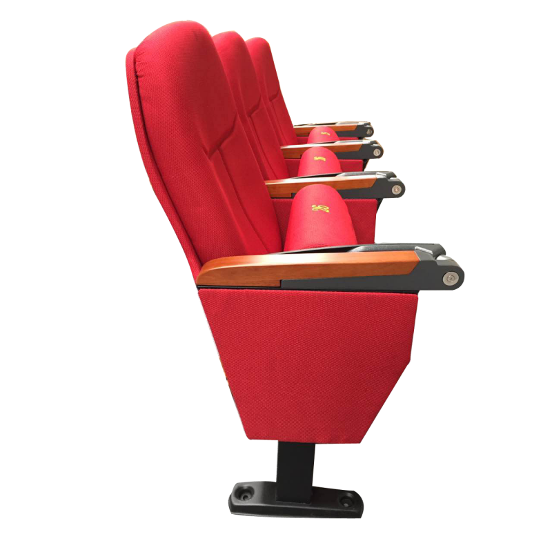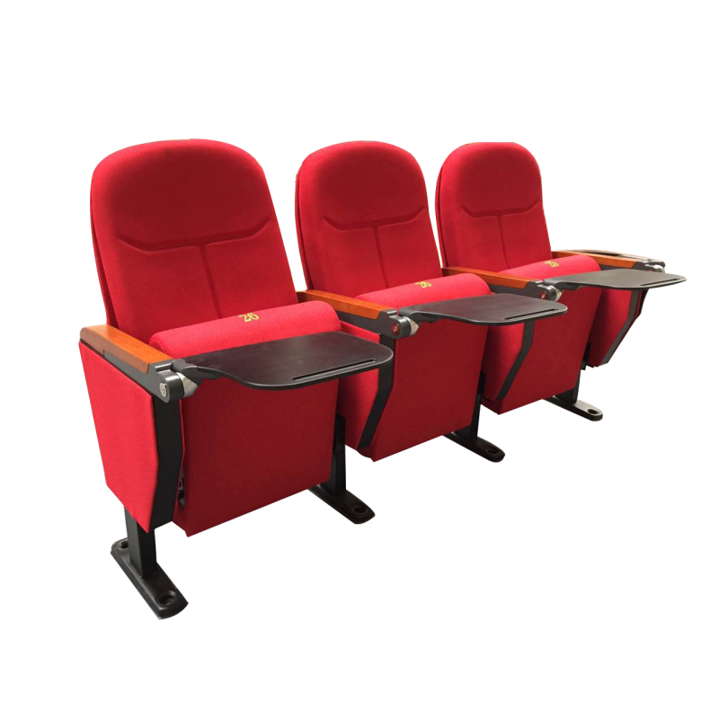 The UA-615M modular linked auditorium chair is a timeless bestseller, defined by its rich, fully upholstered fabric silhouette that balances plush comfort with functional design. Engineered for enduring support during long events, it features high-resilience foam cushions and a supportive lumbar backrest, all anchored by a robust, powder-coated steel frame to ensure exceptional durability in high-traffic venues. Its signature design includes elegant wood-accented armrests paired with integrated fold-down black writing tablets, blending classic warmth with modern practicality. With a wide selection of fabric colors and customizable modular configurations, it can be tailored to perfectly complement your venue’s unique aesthetic.