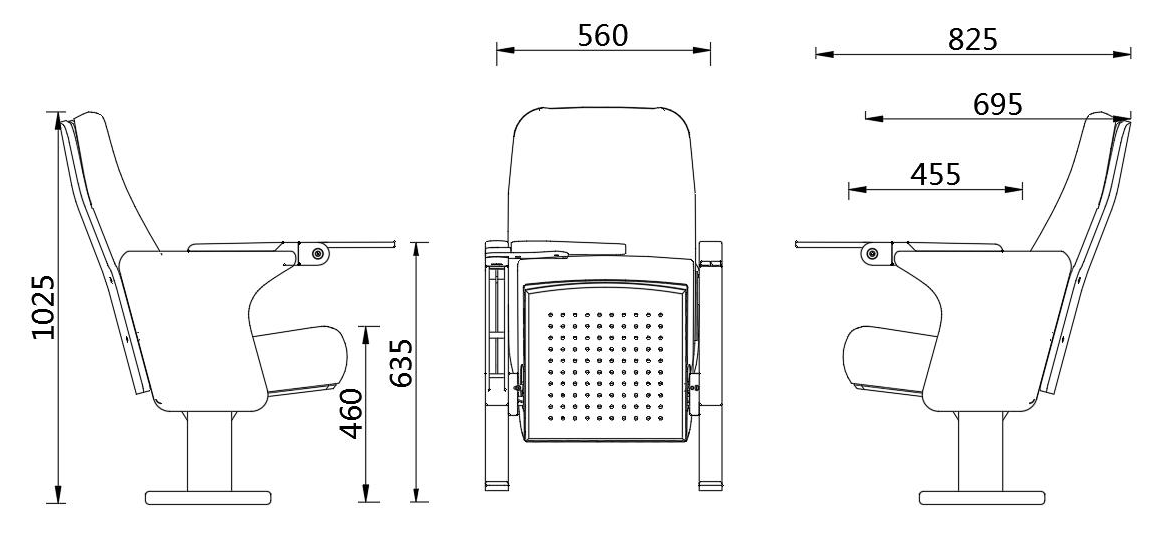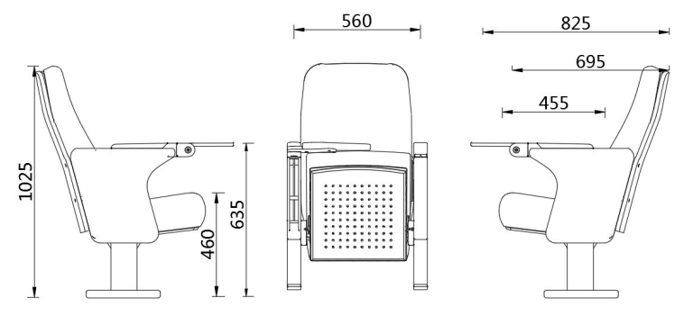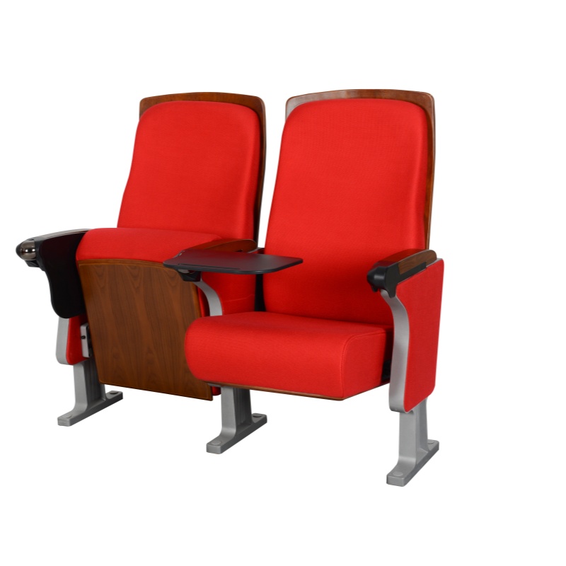 UA-624 is a streamlined, space-saving floor-mounted theater chair with a modular linked design. It features high-strength die-cast aluminum alloy legs for sturdiness and a modern aesthetic, paired with an eversion writing board for convenient use. The chair combines ergonomic comfort and robust durability, maximizing your venue’s seating capacity while offering customizable fabric and wood finishes to match your design preferences.