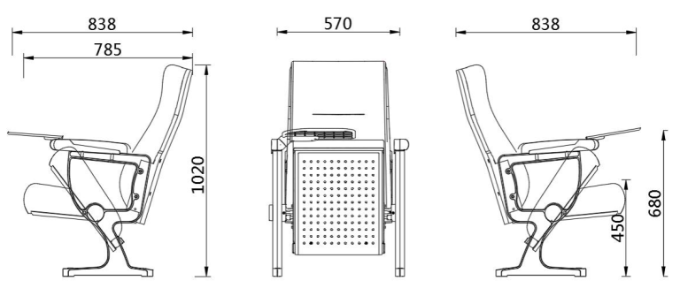 UA-606A is a sleek, space-efficient floor-mounted theater chair that pairs ergonomic comfort and durable construction with modern styling. It maximizes your venue’s seating capacity, and offers customizable fabric and wood finishes to align with your design vision.