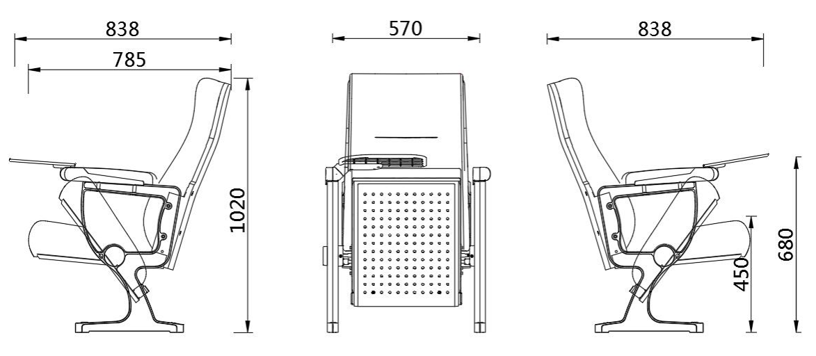 UA-606A is a sleek, space-efficient floor-mounted theater chair that pairs ergonomic comfort and durable construction with modern styling. It maximizes your venue’s seating capacity, and offers customizable fabric and wood finishes to align with your design vision.