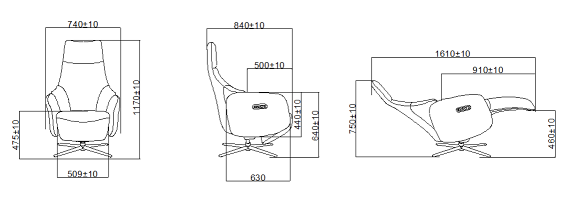 | Floor to armrest height | 630 | 24.8 |