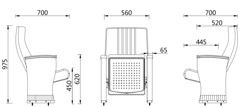 Tip-Up Seat: Combination of spring and damping provides the lifetime quiet seat return.